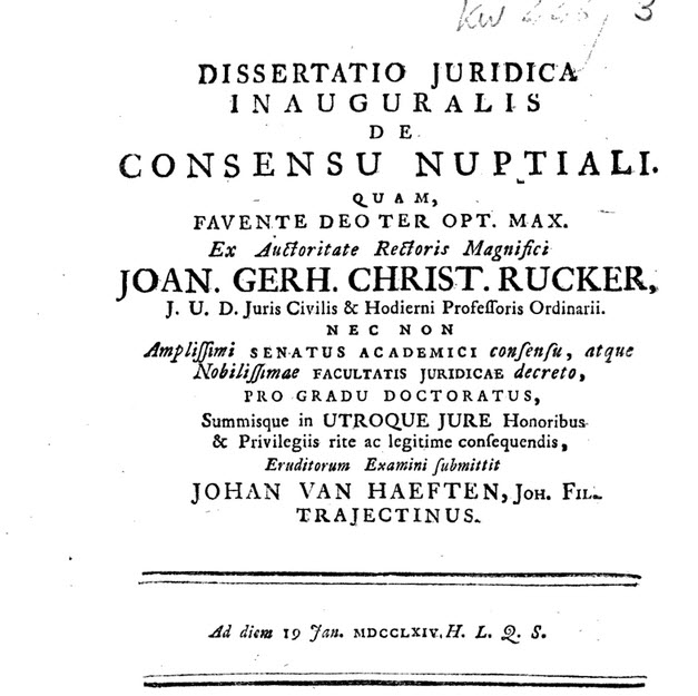 rechten aan de Universiteit van Utrecht op 19 januari 1764 met een promotie bij